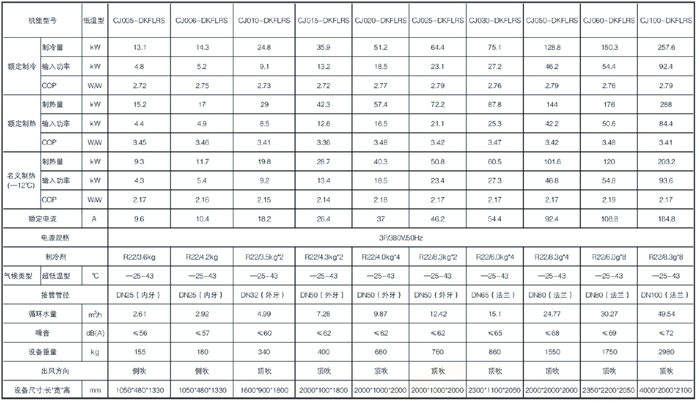 額定制熱工況:室外環境干球7℃/濕球6℃,進水溫度40℃,出水溫度45℃。